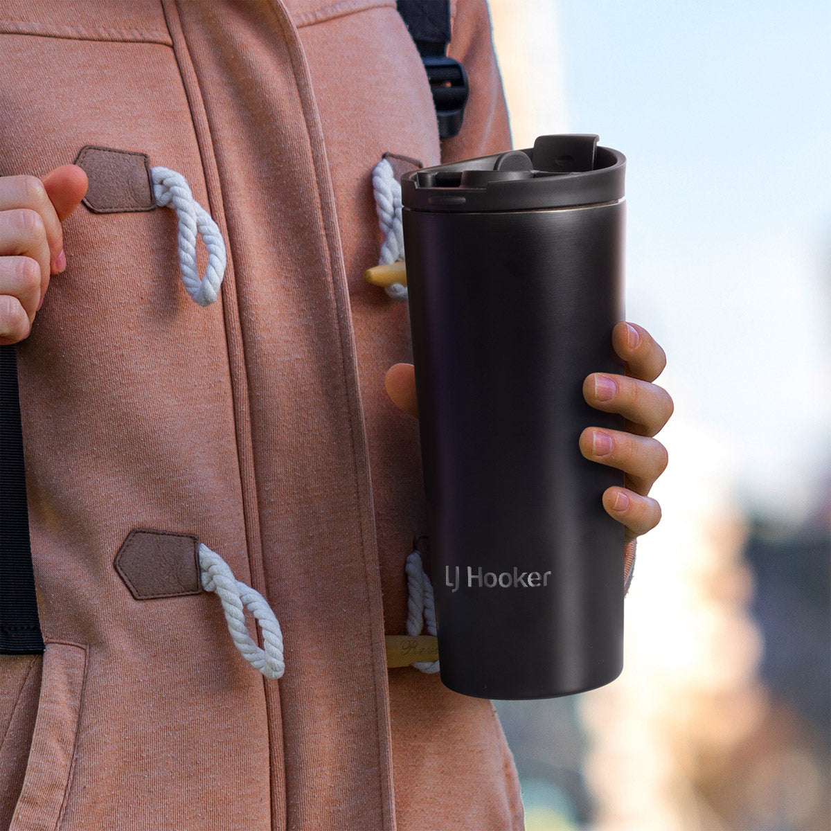 Brew and drink delicious coffee on the go with the Coffee Press Vacuum Cup. Made from stainless steel with a painted finish, this vacuum insulated cup features a screw on lid with a built-in coffee plunger and a flip cap. The cup is BPA-free and is presented in a black gift box.