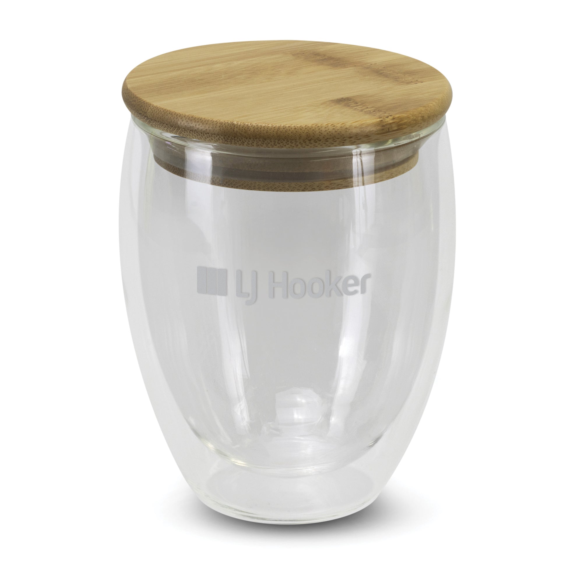 Stunning set of two 350ml Azzurra Glass Cups. These premium cups are made from double wall, shatter-resistant borosilicate glass and feature a natural bamboo lid with a silicone seal. The cups are presented in a premium black gift box and are an elegant gifting solution.