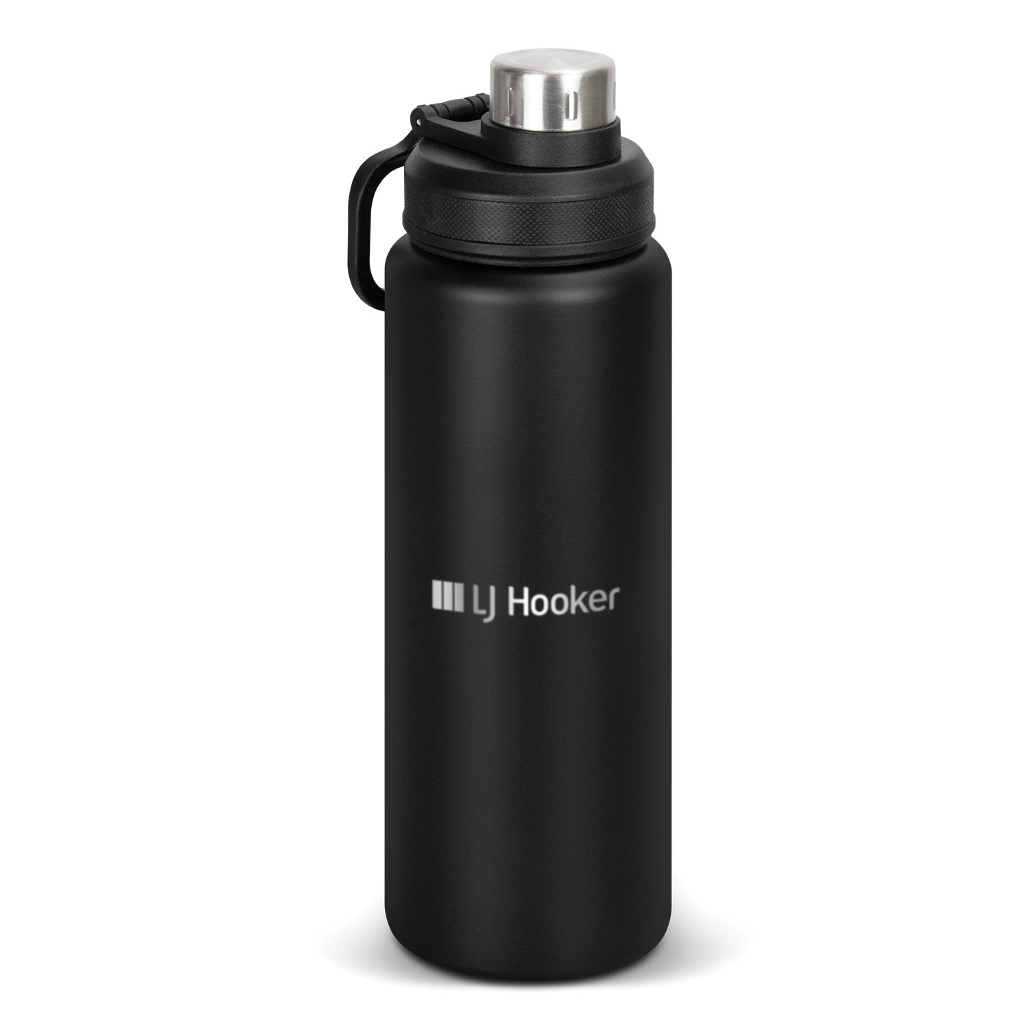 The perfect drinking companion, this 900ml single wall drink bottle is made from stainless steel and comes with a secure screw on lid featuring a silicone band for extra grip. This water bottle comes in a sleek matte black or a white high gloss paint finish, along with a convenient carry handle. this bottle is the perfect blend of style and practicality, and is presented in a natural gift box. This product is not dishwasher safe, and handwashing is recommended.