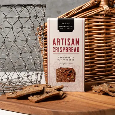 Cranberry and pumpkin seed crispbread, crafted to complement the cheeses and spreads. -